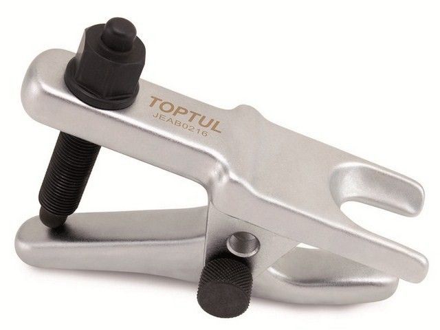 Съемник шаровых наконечников универсальный TOPTUL изготовлен из высокопрочной стали и пригоден для интенсивной эксплуатации. Инструмент имеет две регулировки максимальной длины раскрытия: 30 мм и 55 мм. Подходит для большинства марок легковых автомобилей и легкой коммерческой техники. Рекомендуется для профессионального использования.