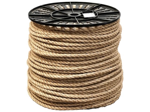 Веревка джутовая получена из кустарника джут, путём плетения и скручивания. Активно веревка используется в различных интерьерных решениях, как для отделки мебели, так и для создания декоративных поделок. Успешно применяется в строительстве, сельском хозяйстве и даже для изготовления домиков и когтеточек для домашних животных. Нашла применение в ландшафтном дизайне Линейная плотность = 29ктекс; Форма выпуска - катушка; Технология изготовления - кручение; Число прядей - 3.