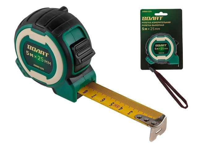 Главная » Измерительный инструмент » Рулетки, мерные ленты » Рулетка 5м/25мм двухкомпон. корп. ВОЛАТ (1 мех. фиксации, ABS+TPR, УФ кольцо на корпусе рулетки)
