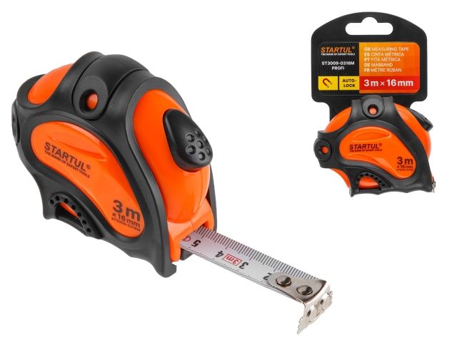 Главная » Измерительный инструмент » Рулетки, мерные ленты » Рулетка 3м/16мм STARTUL PROFI (ST3009-0316M) (Нейлоновое покрытие, автостоп, магнитный зацеп)