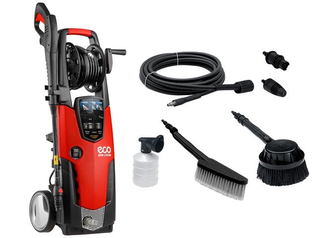 Главная » Мойки высокого давления » Очистители высокого давления ECO » Очиститель высокого давления ECO HPW-1723RS (2.30 кВт, 165 бар, 490 л/ч, самовсасывание, барабан для хранения шланга)