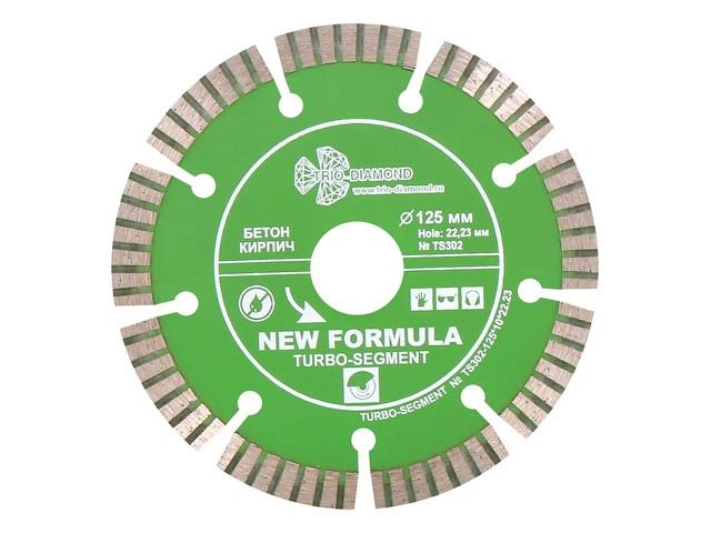 Главная » Оснастка к электроинструменту » Алмазная резка, шлифование и сверление » Алмазные круги Ф125мм » Алмазный круг 125х22,23мм по ж/бетону сегмент Turbo TRIO-DIAMOND