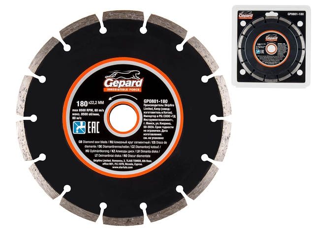 Главная » Оснастка к электроинструменту » Алмазная резка, шлифование и сверление » Алмазные круги Ф 180,200мм » Алмазный круг 180х22 мм универс. сегмент. GEPARD (сухая и мокрая резка)