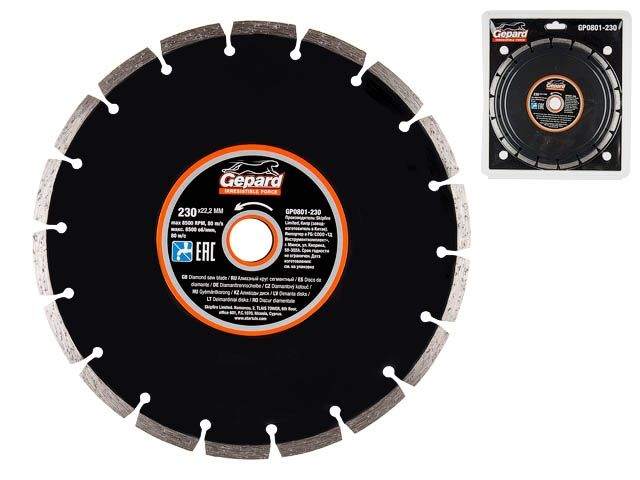 Главная » Оснастка к электроинструменту » Алмазная резка, шлифование и сверление » Алмазные круги Ф 230 мм » Алмазный круг 230х22 мм универс. сегмент. GEPARD (сухая и мокрая резка)