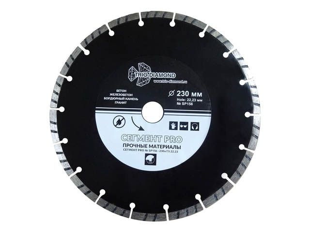 Главная » Оснастка к электроинструменту » Алмазная резка, шлифование и сверление » Алмазные круги Ф 230 мм » Алмазный круг 230х22,23мм по ж/бетону сегмент PRO TRIO-DIAMOND (Обрабатываемый материал:бетон, бордюрный камень, гранит, железобетон)