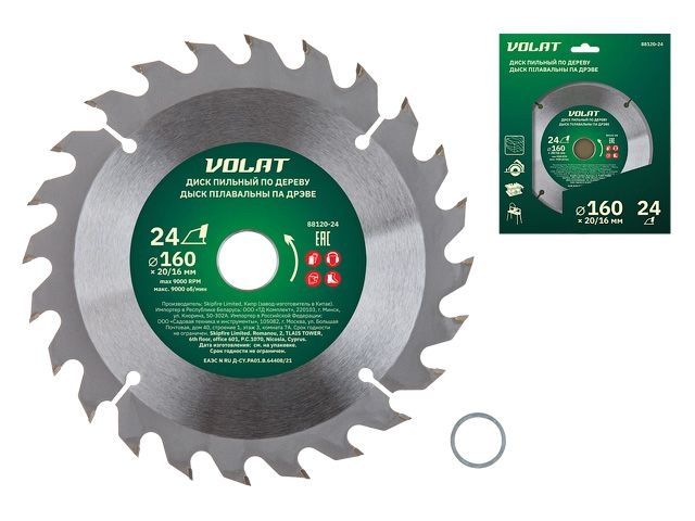 Главная » Оснастка к электроинструменту » Пилы и пилки » Пильные диски для циркулярных пил ф160-165мм » Диск пильный 160х20/16 мм 24 зуб. по дереву ВОЛАТ (твердоспл. зуб)