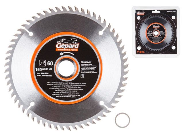 Главная » Оснастка к электроинструменту » Пилы и пилки » Пильные диски для циркулярных пил ф160-165мм » Диск пильный 160х20/16 мм 60 зуб. по дереву GEPARD (твердоспл. зуб)