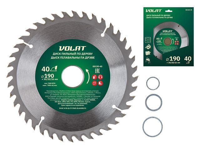 Главная » Оснастка к электроинструменту » Пилы и пилки » Пильные диски для циркулярных пил ф170-190мм » Диск пильный 190х30/20/16 мм 40 зуб. по дереву ВОЛАТ (твердоспл. зуб)