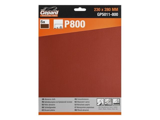 Главная » Оснастка к электроинструменту » Шлифование и полирование » Шлифшкурка в листах » Шлифлист 230х280мм Р800 бум.осн. 5шт. GEPARD (GP5011-800) (бумага наждачная абразивная, лист шлифовальный абразивный, шлифшкурка)