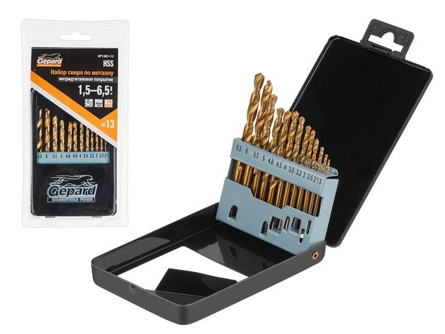 Главная » Оснастка к электроинструменту » Сверление » Наборы сверл по металлу » Набор сверл по мет. 13шт 1.5-6.5мм HSS TIN GEPARD (сверло по металлу, нитридтитановое покрытие)