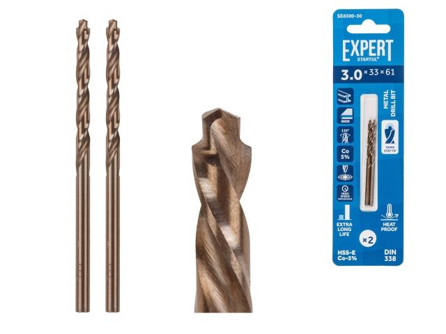 Главная » Оснастка к электроинструменту » Сверление » Сверла по металлу цилиндрический хвостовик EXPERT STARTUL » Сверло по металлу ц/х 3.0х33х61 мм HSS-Co, комплект из 2-х шт EXPERT STARTUL (кобальт 5%)