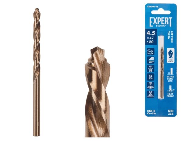 Главная » Оснастка к электроинструменту » Сверление » Сверла по металлу цилиндрический хвостовик EXPERT STARTUL » Сверло по металлу ц/х 4.5х47х80 мм HSS-Co EXPERT STARTUL (кобальт 5%)