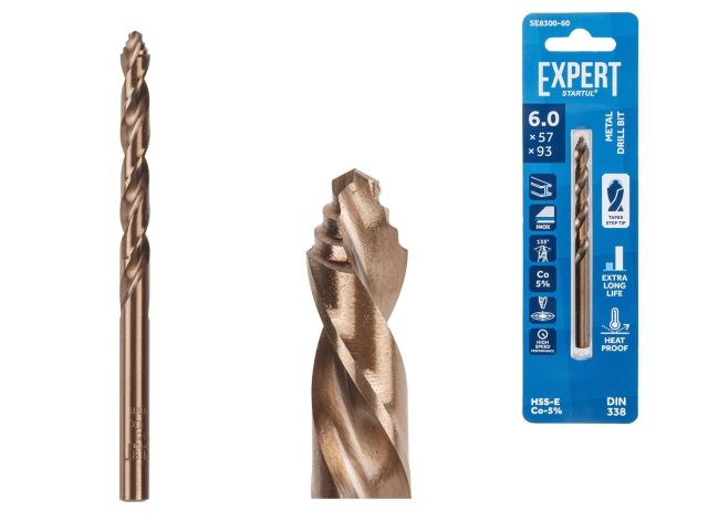 Главная » Оснастка к электроинструменту » Сверление » Сверла по металлу цилиндрический хвостовик EXPERT STARTUL » Сверло по металлу ц/х 6.0х57х93 мм HSS-Co EXPERT STARTUL (кобальт 5%)