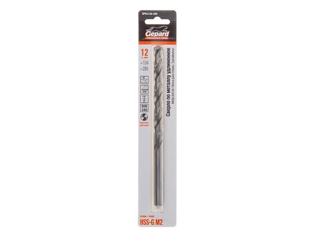 Главная » Оснастка к электроинструменту » Сверление » Сверла по металлу цилиндрический и шестигранный хвостовик GEPARD » Сверло по металлу ц/х 12.0х134х205 мм удлиненное HSS-G GEPARD