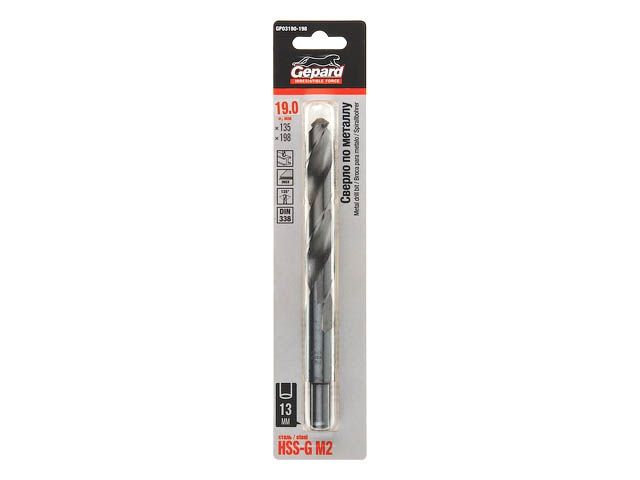 Главная » Оснастка к электроинструменту » Сверление » Сверла по металлу цилиндрический и шестигранный хвостовик GEPARD » Сверло по металлу ц/х 19.0х135х198 мм HSS-G GEPARD (хвостовик 13мм)