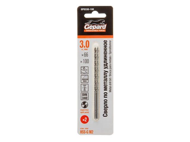 Главная » Оснастка к электроинструменту » Сверление » Сверла по металлу цилиндрический и шестигранный хвостовик GEPARD » Сверло по металлу ц/х 3.0х66х100 мм удлиненное HSS-G, комплект из 2-х шт GEPARD