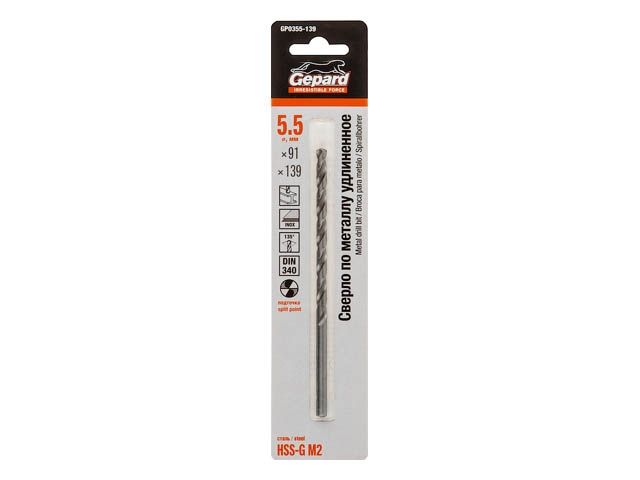 Главная » Оснастка к электроинструменту » Сверление » Сверла по металлу цилиндрический и шестигранный хвостовик GEPARD » Сверло по металлу ц/х 5.5х91х139 мм удлиненное HSS-G GEPARD