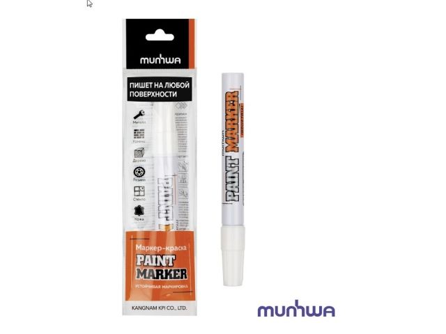 Главная » Ручной инструмент » Инструмент для разметки » Маркеры промышленые » Маркер-краска промышленный белый MUNHWA INDUSTRIAL (толщ. линии 4.0 мм. Цвет белый, европодвес)