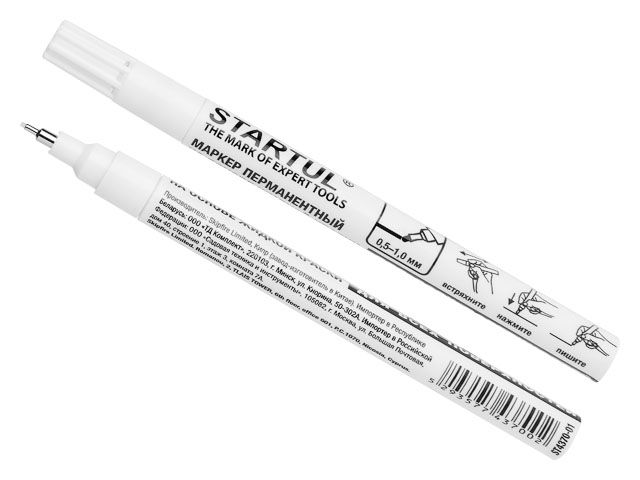 Главная » Ручной инструмент » Инструмент для разметки » Маркеры промышленые » Маркер промышл. перманентный на основе жидк. краски белый STARTUL PROFI (ST4370-01) (толщ. линии 0,5-1,0 мм, латунный наконечник)