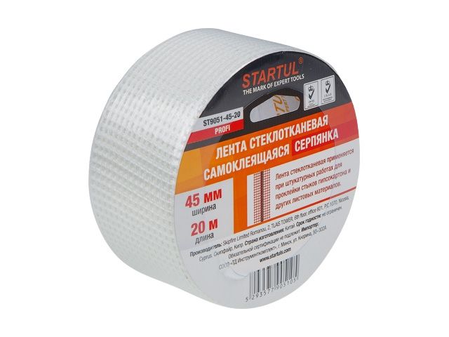 Главная » Ручной инструмент » Малярный инструмент » Лента малярная, серпянка » Лента стеклотканевая (серпянка) 45ммх20м самокл. STARTUL PROFI (ST9051-45-20)