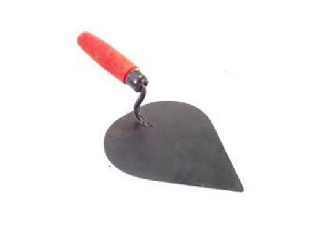 Кельма бетонщика имеет рабочее полотно треугольной формы. Используется при кладке кирпича, а также для отмеривания и нанесения цементного раствора.