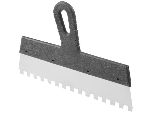 Главная » Ручной инструмент » Штукатурно-отделочный инструмент » Шпатели » Шпатель фасад. зубчат. нерж. 300мм зуб 10х10 STARTUL MASTER (ST1004-3001) (для клея)