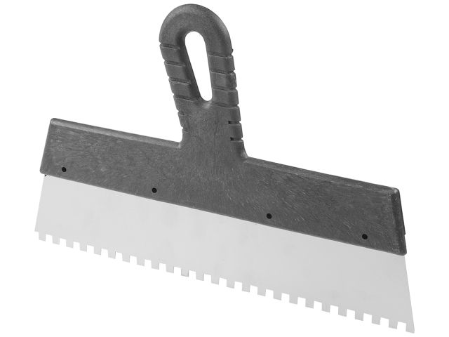 Главная » Ручной инструмент » Штукатурно-отделочный инструмент » Шпатели » Шпатель фасад. зубчат. нерж. 300мм зуб 6х6 STARTUL MASTER (ST1004-3006) (для клея)