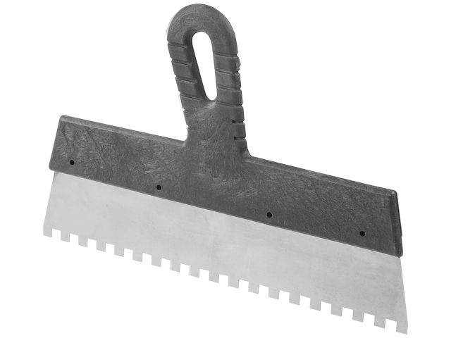 Главная » Ручной инструмент » Штукатурно-отделочный инструмент » Шпатели » Шпатель фасад. зубчат. нерж. 300мм зуб 8х8 STARTUL MASTER (ST1004-3008) (для клея)