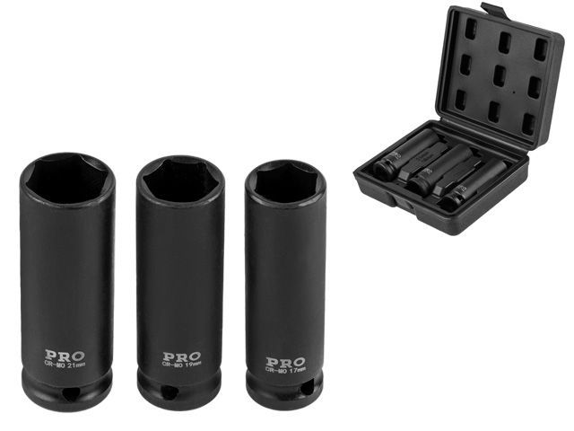 Главная » Ручной инструмент » Слесарно-столярный инструмент » Головки, головки с насадками, биты-головки 1" » '"2" » Набор головок ударн. тонкост. 1/2" (17,19,21мм) 6гр. 3пр. PRO STARTUL (PRO-34003)