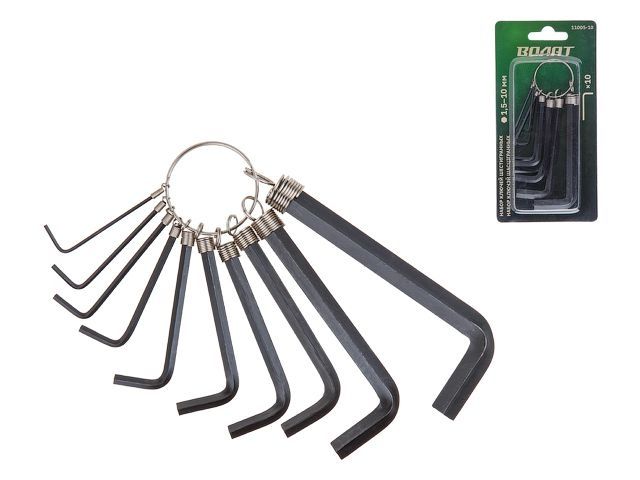 Размеры ключей в комплекте, мм: 1,5-2-2,5-3-4-5-5,5-6-8-10;