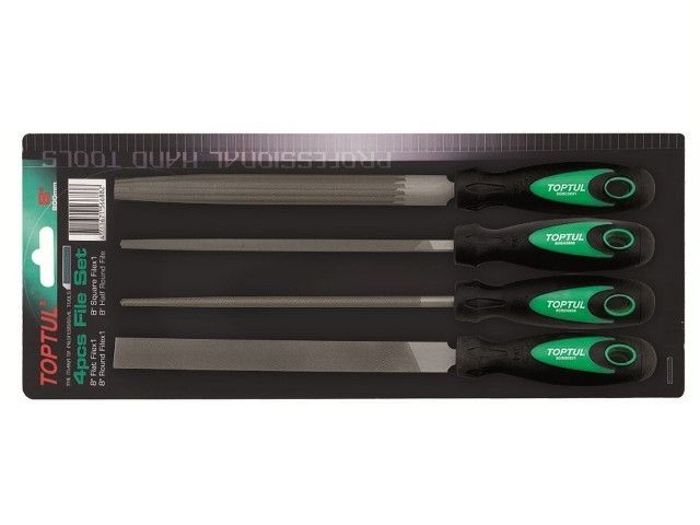 Набор напильников 4 штук TOPTUL (GBAR0401) включает в себя четыре напильника: круглый SDBD0808, квадратный SDBA0808, плоский SDBB0821 и полукруглый SDBC0821. Применяются для обдирочных работ, зачистке от заусенцев металлических кромок различных конфигураций. Все напильники набора оснащены двухкомпонентными рукоятями, увеличивающими эффективность работы инструмента и гарантирующими надежный хват.