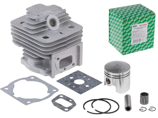 Цилиндр 40мм 1шт, поршень 40мм 1шт, поршневые кольца 2шт, палец 1шт, стопорное кольцо 2шт, игольчатый подшипник 1шт, прокладка цилиндра 1шт, прокладка карбюратора 1шт, прокладка впускного коллектора 1шт;