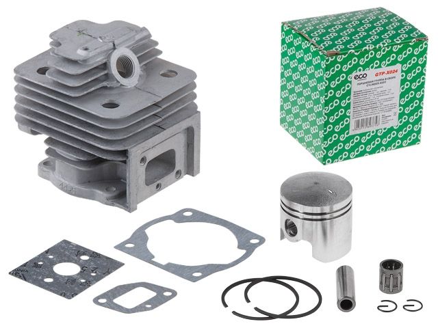 Цилиндр 44мм 1шт, поршень 44мм 1шт, поршневые кольца 2шт, палец 1шт, стопорное кольцо 2шт, игольчатый подшипник 1шт, прокладка цилиндра 1шт, прокладка карбюратора 1шт, прокладка впускного коллектора 1шт;