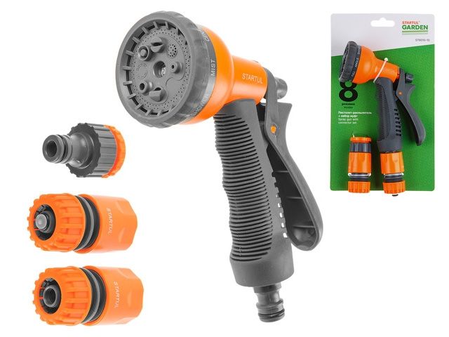 Главная » Садовый инструмент » Поливочные принадлежности, шланги » Поливочные пистолеты, распылители » Пистолет-распылитель 8-позиц.+набор фитинга STARTUL GARDEN (ST6010-10)