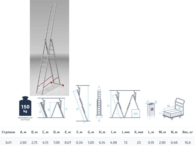 Главная » Строительное оборудование » Лестницы, стремянки, леса, подмости, мусоропровод строительный » Лестница алюм. 3-х секц. 275/709/290см 3х11 ступ., 16,6кг PRO STARTUL (ST9942-11)