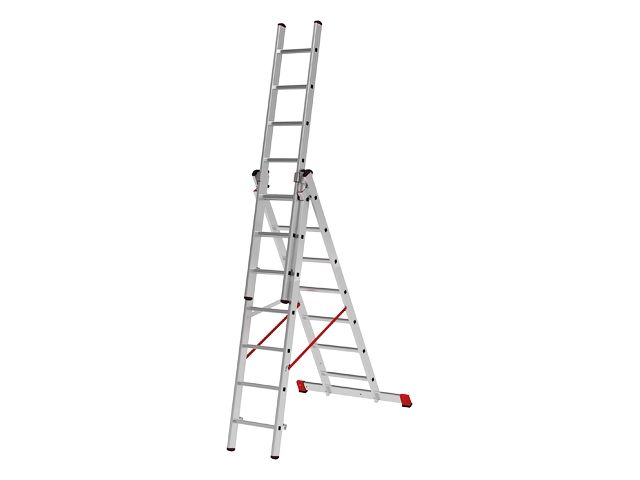 Главная » Строительное оборудование » Лестницы, стремянки, леса, подмости, мусоропровод строительный » Лестница алюм. 3-х секц.432/1186/458см 3х17 ступ., 36,5кг NV323 Новая Высота (макс. нагрузка 150кг)