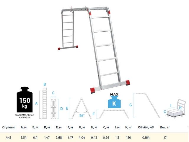 Главная » Строительное оборудование » Лестницы, стремянки, леса, подмости, мусоропровод строительный » Лестница алюм. многофункц. трансформер 4х5 ступ., шир. 400 мм, 16,8кг NV3320 Новая высота (Без настила. Максимальная нагрузка - 150 кг) (Новая Высота)
