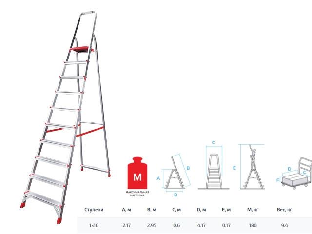 Главная » Строительное оборудование » Лестницы, стремянки, леса, подмости, мусоропровод строительный » Лестница-стремянка алюм. проф. 217 см 10 ступ. 9,5 кг NV3110 Новая Высота (макс. нагрузка 180 кг)