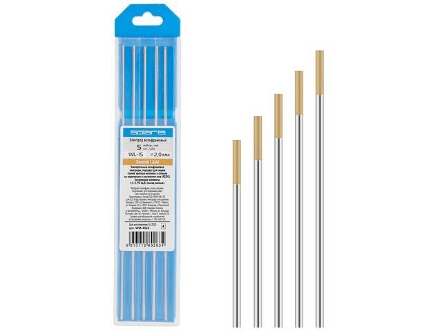 Главная » Сварочное оборудование и материалы » Электроды » Электроды вольфрамовые » Электрод вольфрамовый золотой WL-15, Ф 2,0 мм (набор 5 шт) SOLARIS