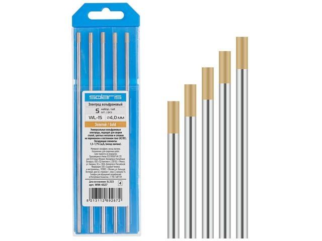 Главная » Сварочное оборудование и материалы » Электроды » Электроды вольфрамовые » Электрод вольфрамовый золотой WL-15, Ф 4,0 мм (набор 5 шт) SOLARIS