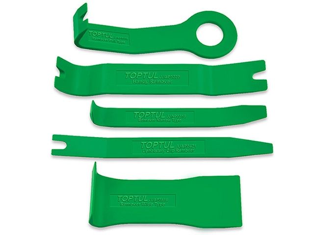Набор съемников салонных TOPTUL состоит из 5 предметов и предназначен для рассоединения крепежных элементов дверных карт и панелей отделки салона. Рекомендуется для профессионального использования.