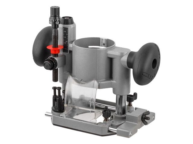 Погружное основание позволяет выполнять фрезеровку, врезаясь в любом месте изделия, т.е. в местах, расположенных не у кромки. Улучшает контроль за инструментом за счет двух рукояток.
