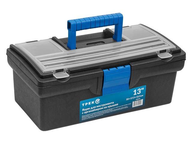 Ящик предназначен для хранения и удобной транспортировки инструментов. Органайзер на крышке позволяют разместить необходимые инструменты и аксессуары. Ящик надежно закрывается с помощью защелки.