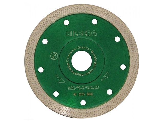 Главная » Оснастка к электроинструменту » Алмазная резка, шлифование и сверление » Алмазные круги Ф125мм » Алмазный круг 125х22 мм по керамике сплошн.ультратонкий S-тип Turbo HILBERG (1,22мм)