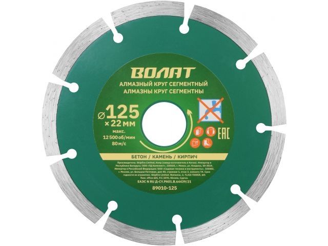 Главная » Оснастка к электроинструменту » Алмазная резка, шлифование и сверление » Алмазные круги Ф125мм » Алмазный круг 125х22 мм универс. сегмент. ВОЛАТ (сухая резка)