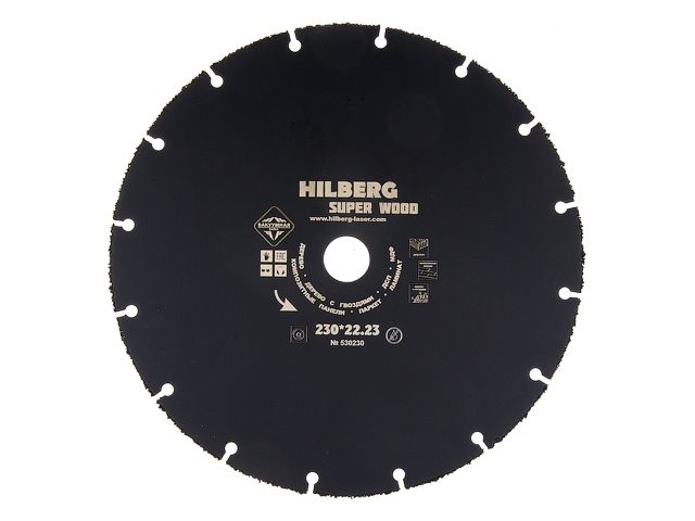 Главная » Оснастка к электроинструменту » Алмазная резка, шлифование и сверление » Алмазные круги Ф 230 мм » Круг карбид вольфрама отрезной 230х22 мм для дерева Super Wood HILBERG (Не боится гвоздей)
