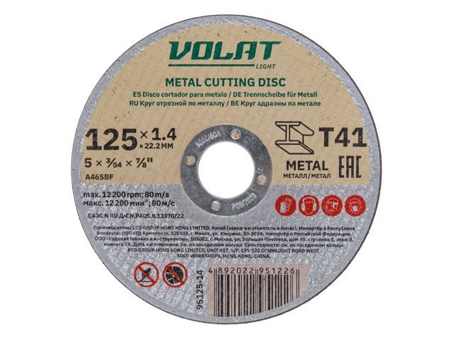 Главная » Оснастка к электроинструменту » Оснастка для угловых шлифмашин » Круги отрезные и обдирочные ф 125 мм » Круг отрезной 125х1.4x22.2 мм для металла ВОЛАТ LIGHT