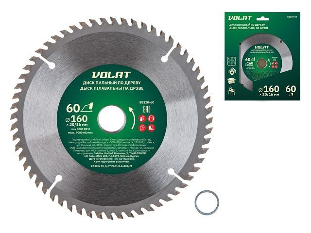 Главная » Оснастка к электроинструменту » Пилы и пилки » Пильные диски для циркулярных пил ф160-165мм » Диск пильный 160х20/16 мм 60 зуб. по дереву ВОЛАТ (твердоспл. зуб)