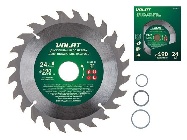 Главная » Оснастка к электроинструменту » Пилы и пилки » Пильные диски для циркулярных пил ф170-190мм » Диск пильный 190х30/20/16 мм 24 зуб. по дереву ВОЛАТ (твердоспл. зуб)