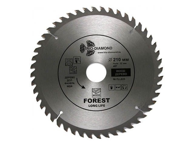 Диск пильный 216х30 мм 48 зубьев TRIO-DIAMOND Forest Long Life (FLL831) предназначен для распила древесины, ДСП, фанеры. Угол заточки 15 градусов. Максимальное число оборотов 7000 RPM.Тип диск пильныйДиаметр 216 ммКоличество зубьев 48 штШир...